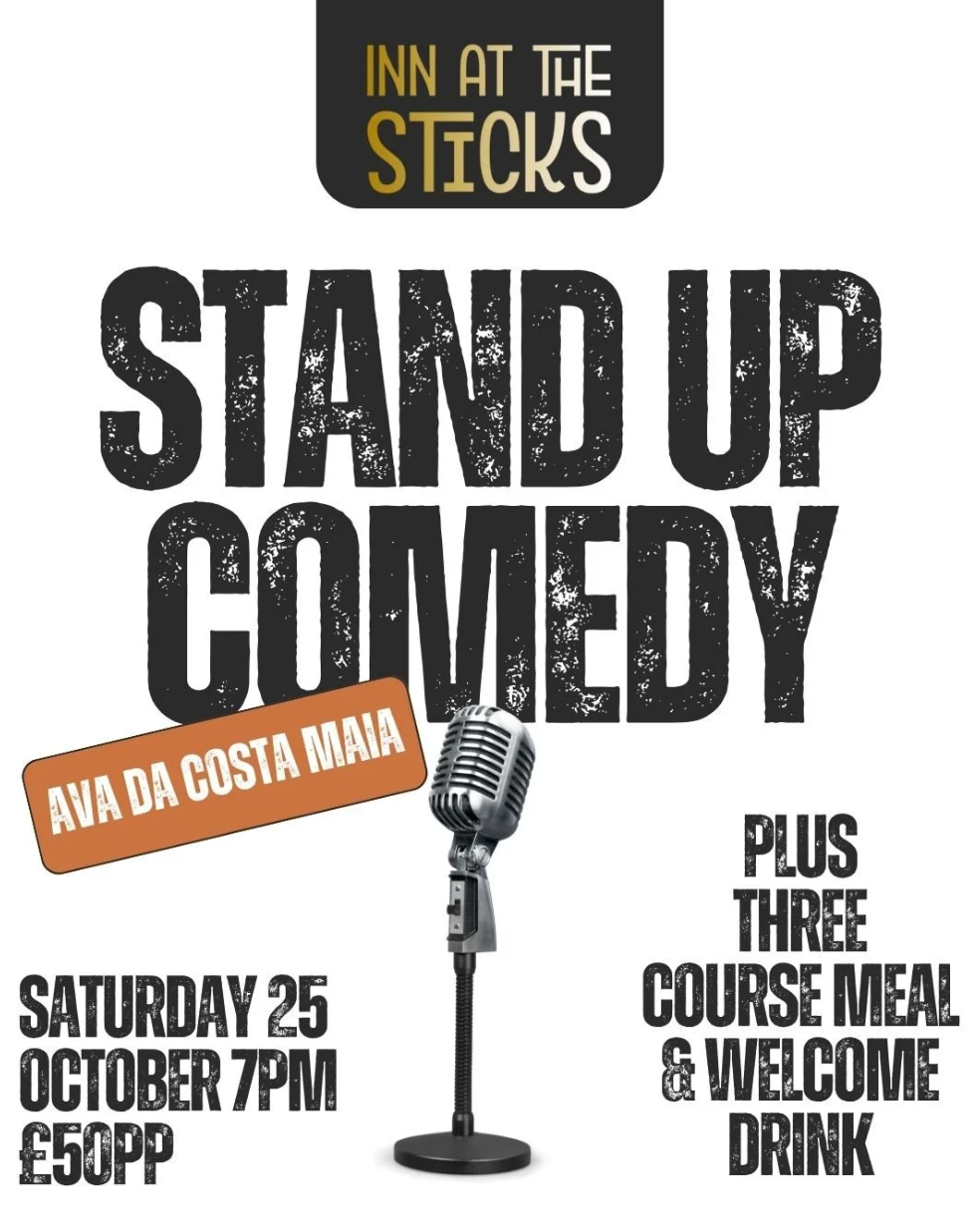 ![]() Join us at Inn At The Stick for an unforgettable Comedy Night with Ava Da Costa Maia! Enjoy an evening of laughter and great food, complete with a three-course meal... |